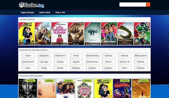En el puesto numero 5 tenemos a YASKE, a pesar de ser una pagina muy buena con el contenido que sube, ya sea peliculas o series, que por lo que he visto, tiene bastante variedad y se pueden encontrar casi cualquier pelicula o serie, el interfaz de su pagina a parte de ser muy simple, siento que le faltan mas opciones para la comodidad del consumidor, por ejemplo, si te vas a la sección de "Acción" podemos encontrar muchas peliculas variadas y un tanto desordenadas por la fecha en la que fueron lanzada y en cuanto a la calidad de las peliculas mayormente se encuentran en DVD-RIP osea como en 240 o 360p pero obviando todo eso, sigue siendo una pagina muy buena en la que podras encontrar casi cualquier pelicula que desees ver.